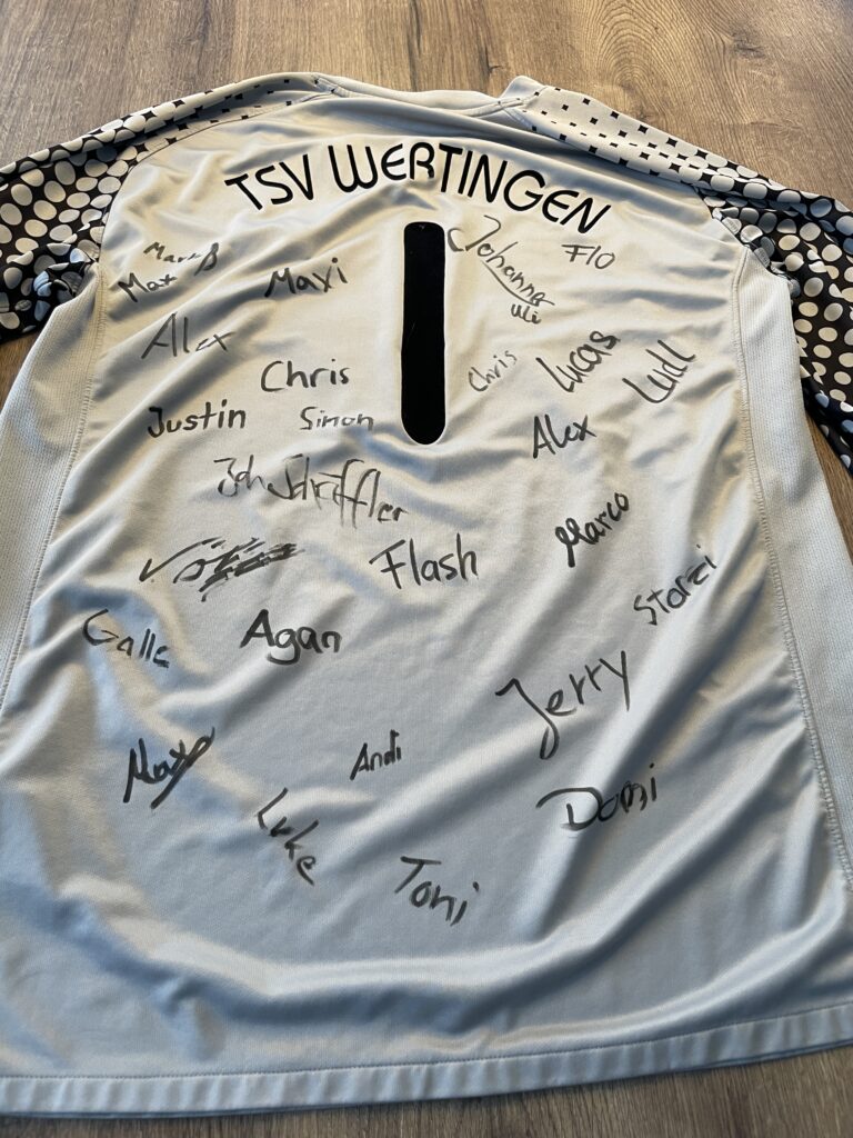 Ein wirklich tolles Trikot mit der Rückennummer 1, unterschrieben von der gesamten Mannschaft der 1. Herren des TSV Wertingen! Vielen Dank an Herrn Stoll und die ganze Mannschaft für das Trikot!